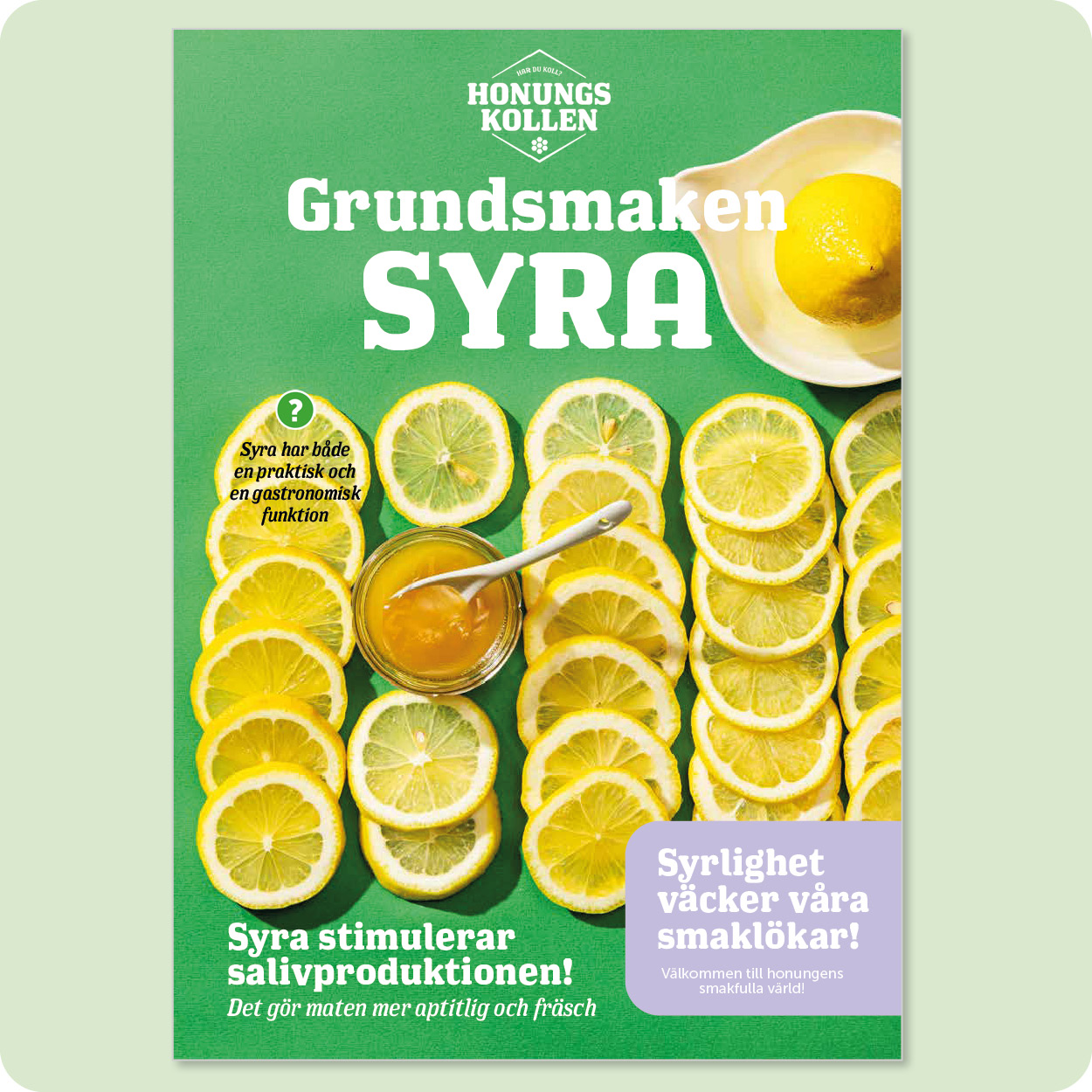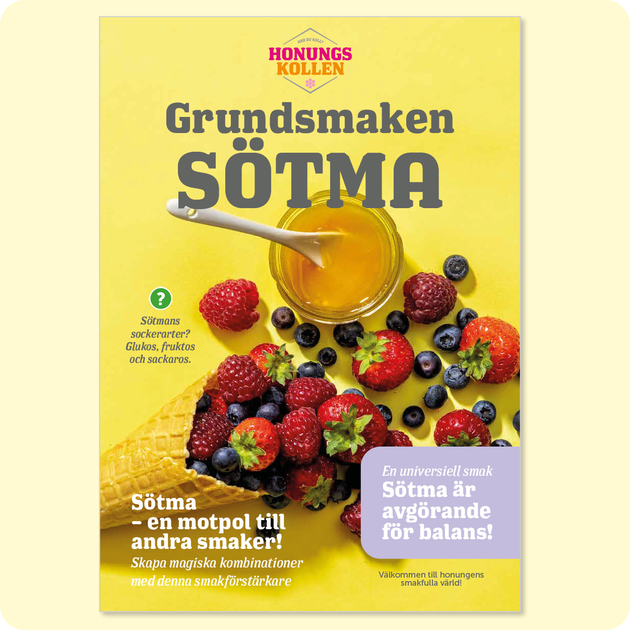I våra digitala broschyrer får du följa med på en smakresa genom honungens värld, där varje del handlar om en av våra grundsmaker: sötma, sälta, syra, beska, umami – och hetta.